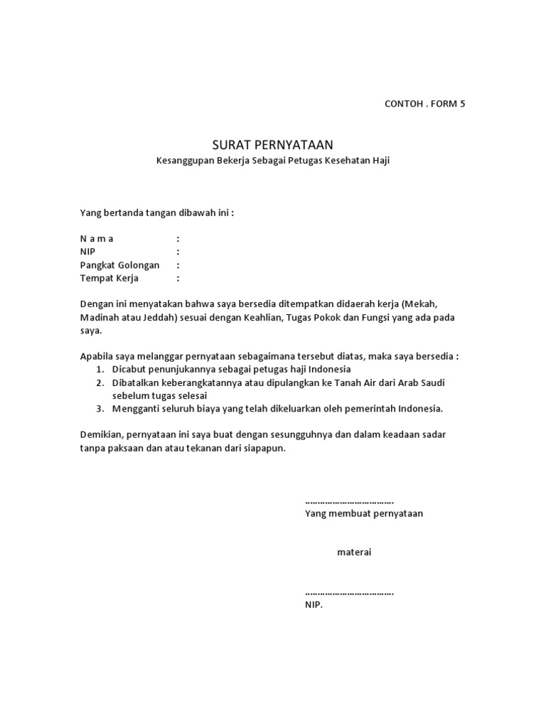 Surat Pernyataan from imgv2-1-f.scribdassets.com Memiliki pekerjaan tentu merupakan anugerah tersendiri ketika anda melamar pekerjaan di perusahaan tertentu dan anda diterima bekerja disana. Surat pernyataan sendiri terdiri atas beberapa kategori. Semoga dapat menjadi manfaat bahan referensi bagi kita semua dalam membuat surat pernyataan yang baik dan benar serta dengan format yang resmi dan profesional. Surat ini merupakan salah satu bentuk dari surat pernyataan. Surat pernyataan merupakan sebuah kesanggupan seseorang atas sebuah kesepakatan dengan pihak terkait, seperti lebaga atau perusahaan secara tertulis dan sifatnya resmi. Surat pernyataan kesanggupan adalah surat yang berisi kesediaan bahwa seseorang mampu memenuhi hal tertentu yang diminta dan mau menanggung risiko di baliknya. Surat pernyataan kesanggupan ini dibuat pada hari selasa, tanggal 12 juli 2018 dan bertempat di jalan mulyo agung no. Contoh surat pernyataan kesanggupan kerja.